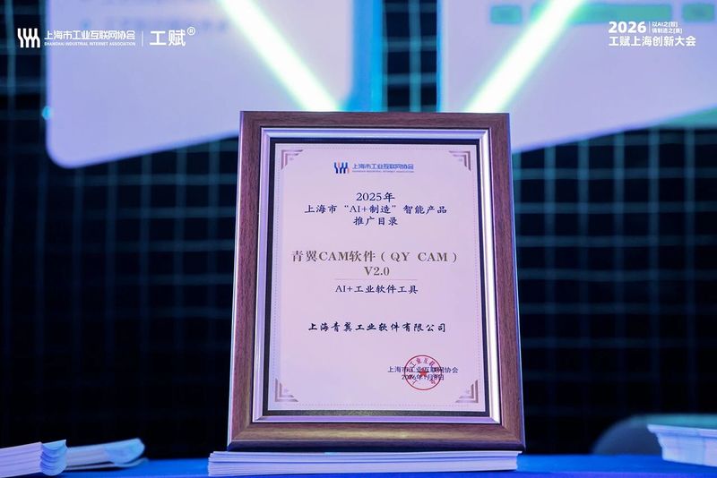 新年伊始,以“AI之‘智’,铸制造之‘质’”为主题的2026“工赋上海”创新大会在上海隆重开幕。本次大会汇聚了来自政府部门领导、学术界专家、产业界代表,共商“AI+制造”发展大计。作为国产工业软件企业代表,青翼工业软件荣幸受邀出席本次盛会并参与主会场AI+制造技术分享。青翼工业软件的核心产品,青翼CAM软件(QY CAM)成功入选上海市“AI+制造”智能产品推广目录(AI+工业软件工具类)。