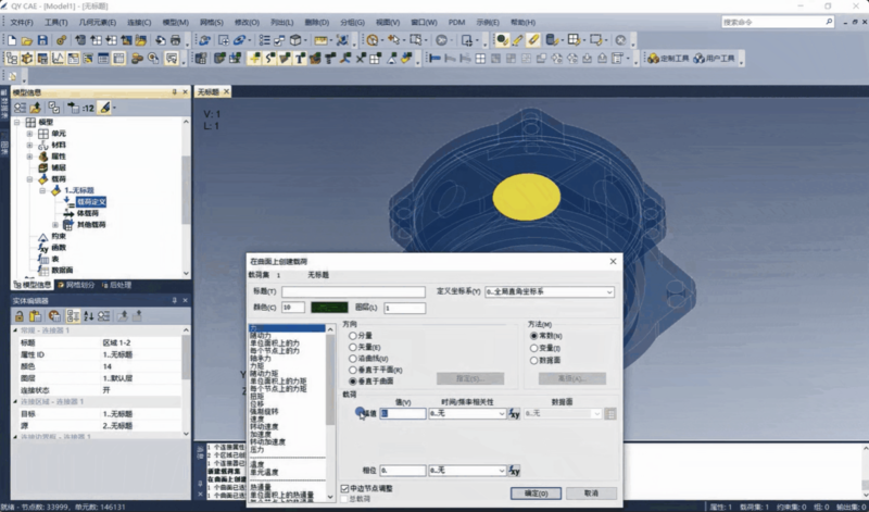 设置网格大小为3mm;加载材料,可以自定义或者从青翼CAE材料库中选取;划分四面体网格:中边节点选项用于控制生成10节点四面体单元或者4节点四面体单元的网格。
