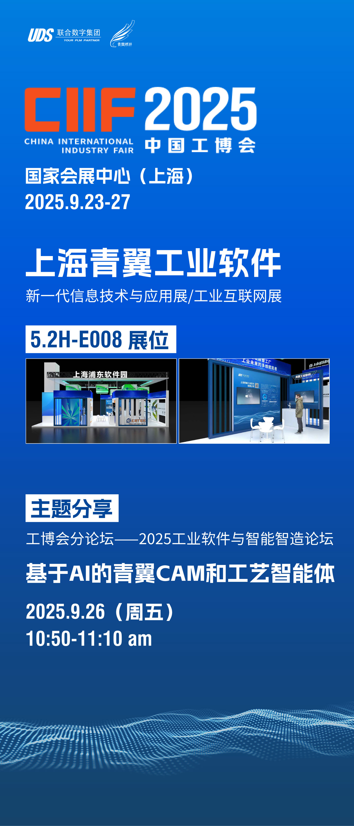 第25届中国国际工业博览会(工博会)将于2025年9月23日至9月27日在国家会展中心(上海)举行。应上海浦东软件园组团邀请,上海青翼工业软件将携旗下全自主研发的旗舰产品青翼CAM和青翼PLM参展本次工博会,实际展示青翼“AI+制造”的最新实践成果!